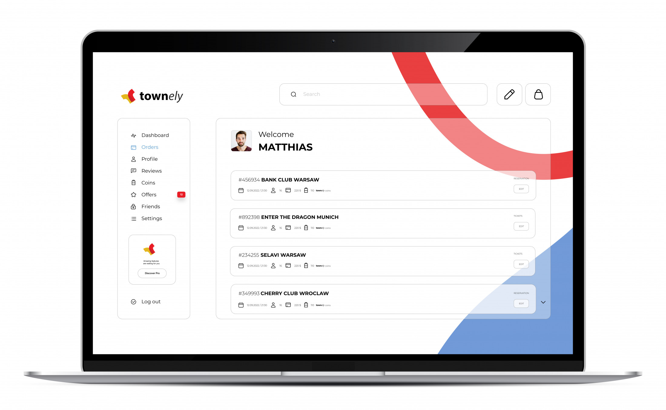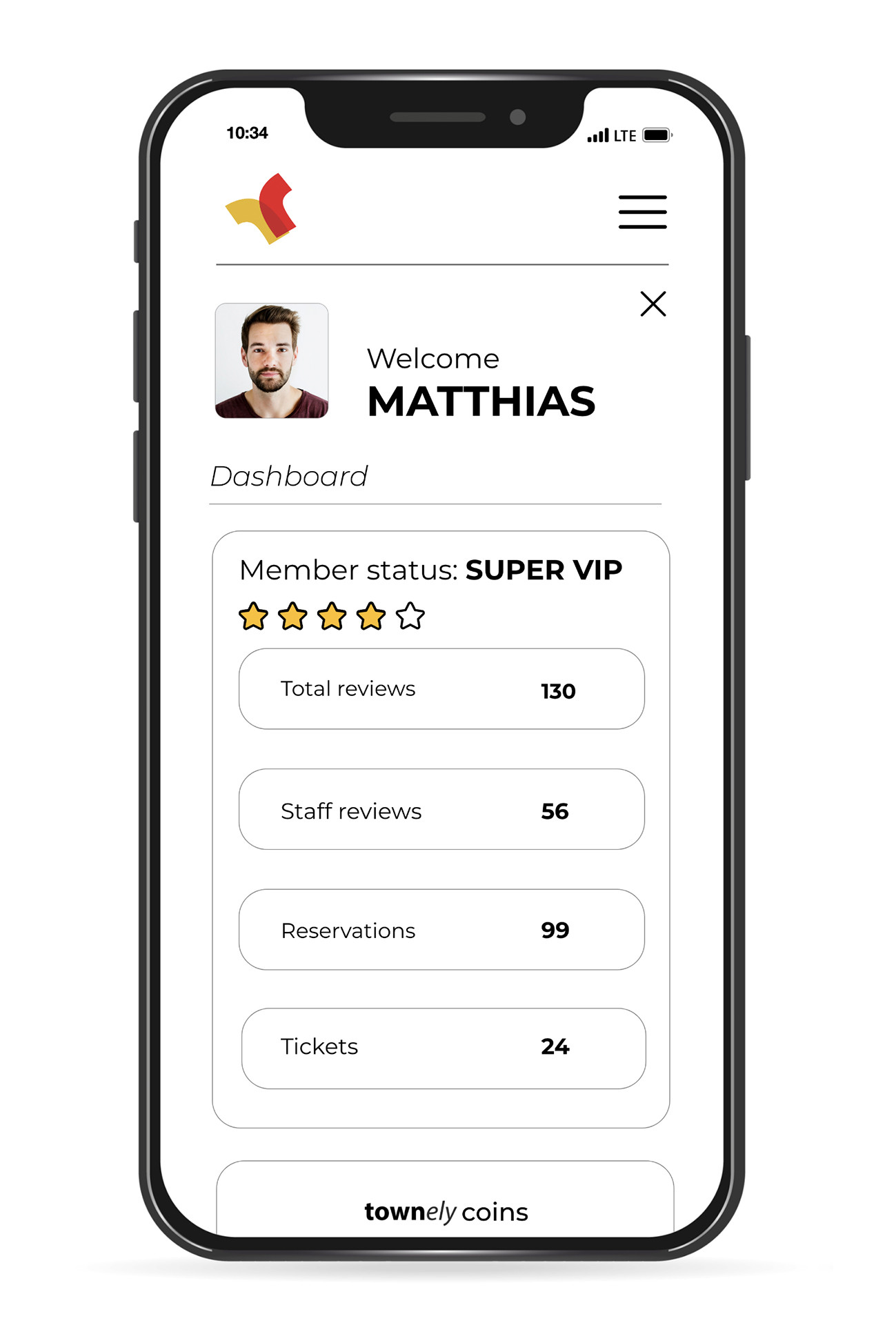 On your dashboard, you have quick access to all the important information related to the status of your account. Here you can check how many Townely coins you have and what gifts you can exchange them for. Your earned points as a result of your activity can be exchanged for free drinks, club tickets, concert tickets, or restaurant discounts . The more bookings, tickets bought, and reviews shared, the more points you accumulate.